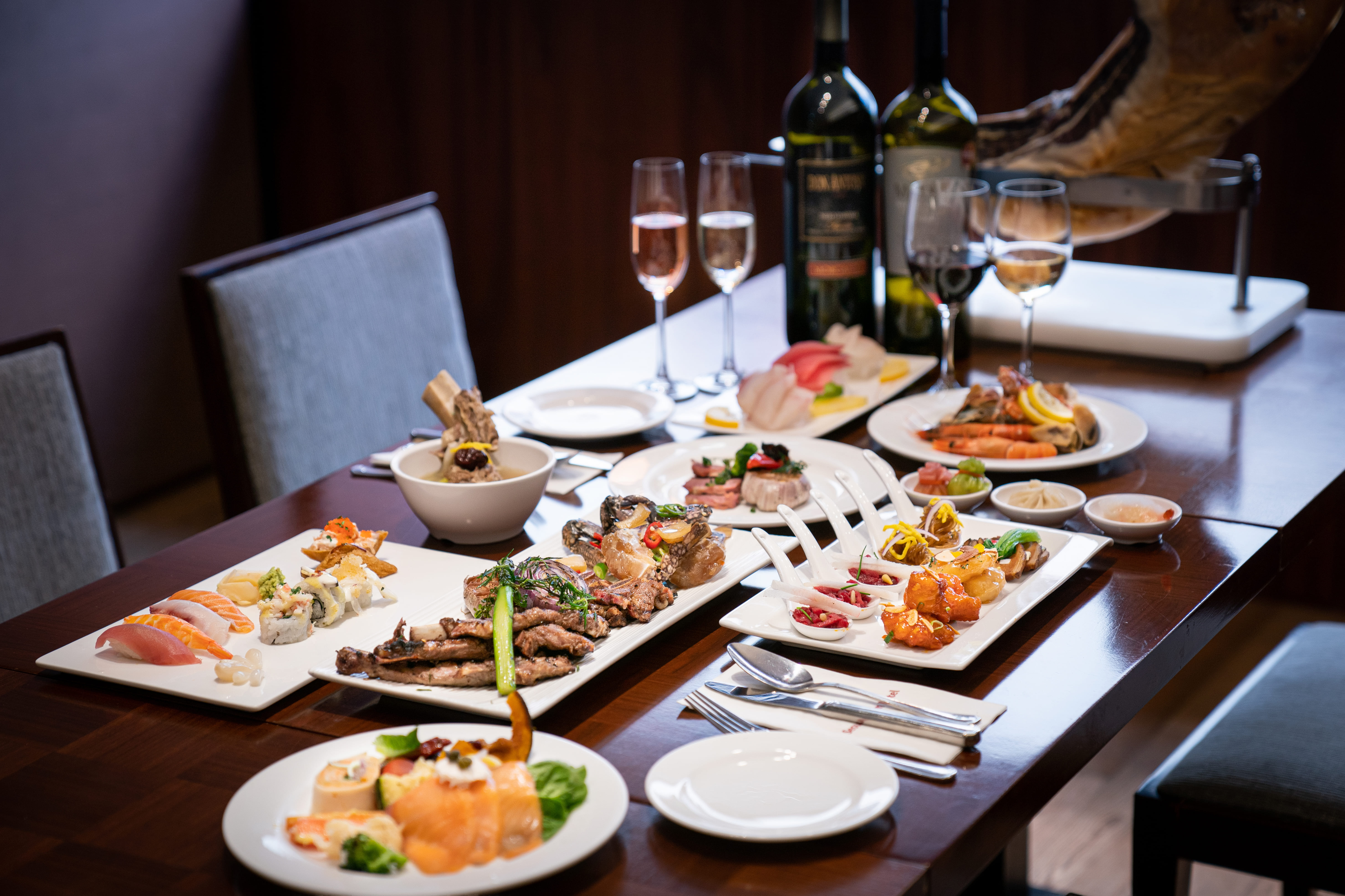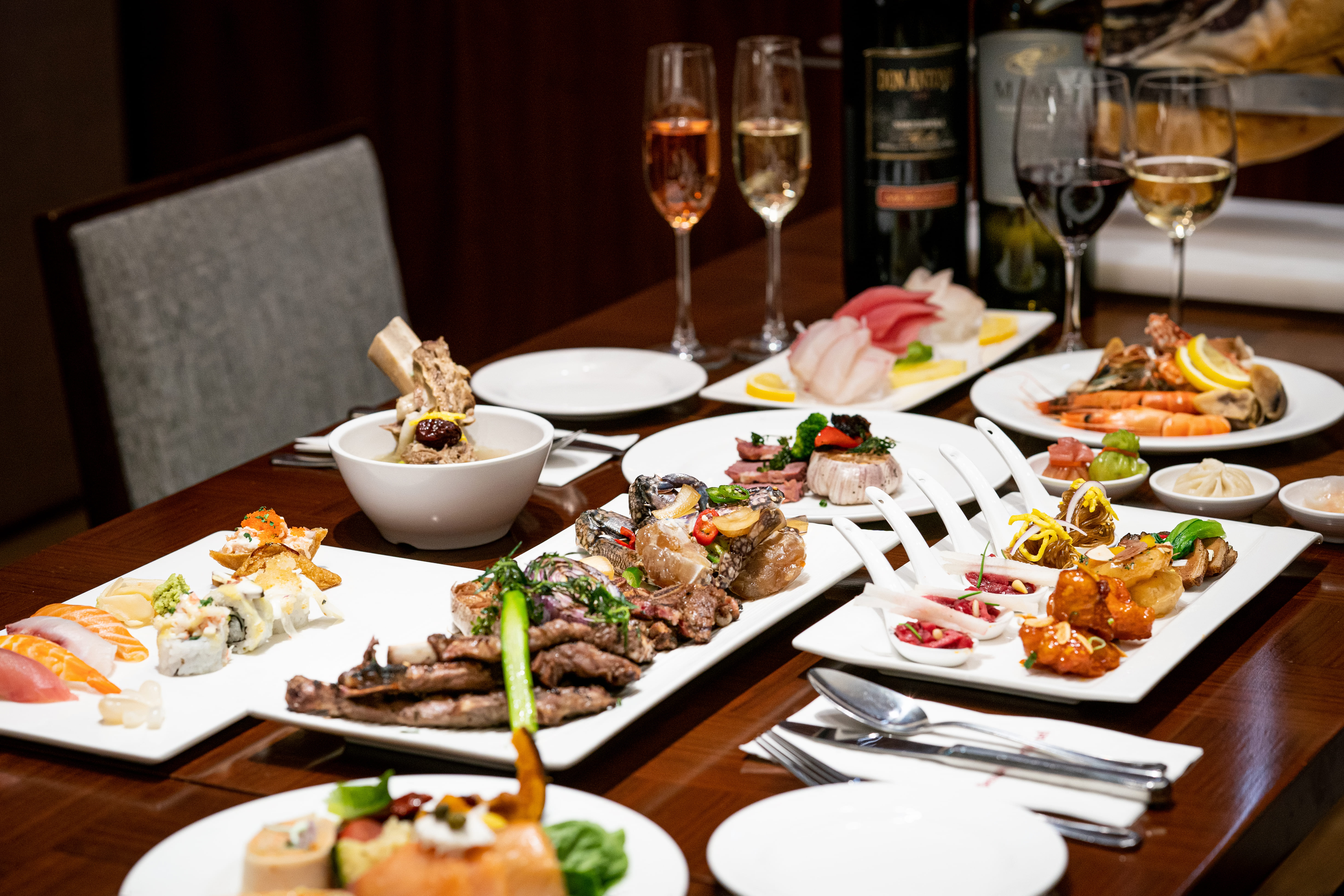 라스텔라에서는 다양한 와인을 무제한으로 즐길 수 있습니다. 오리스탄 크리안자는 스모키한 맛이 나 육류 요리와 잘 어울려요. 레어빈야드 까베르네 멜롯은 베리향이 특징적이라 중식 요리와 페어링하면 좋습니다. 제이키퍼 블랑드블랑 브뤼는 당도가 낮아 해산물 요리나 디저트와 잘 어울리죠.