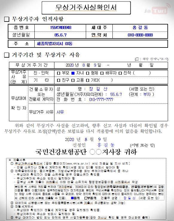 무상거주확인서 제출 양식 바로가기