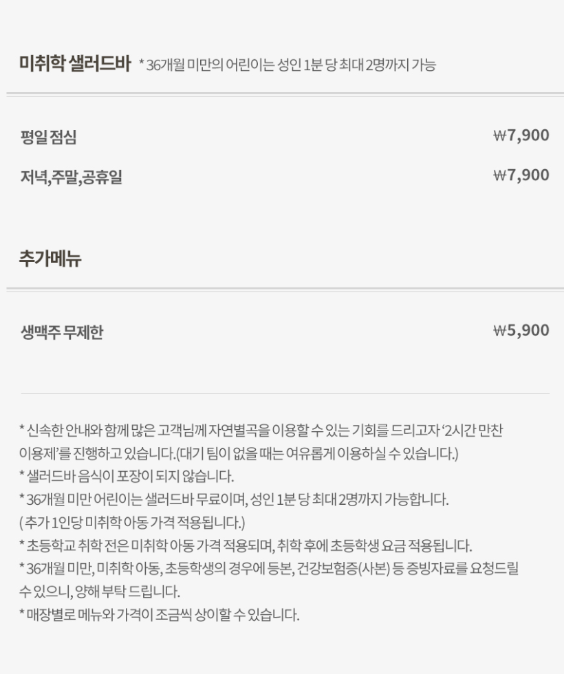 - 평일 런치타임 이용 시 추가 할인